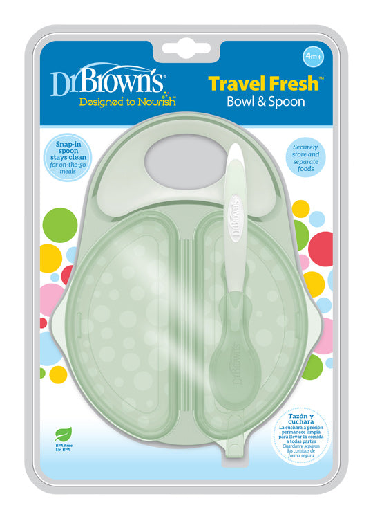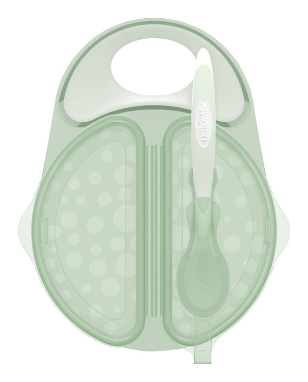 Je čas na odchod! Zoberte si so sebou Dr.Brown´s cestovnú misku s lyžičkou. Tak jednoduché, bez rozlievania a neporiadku. Dr.Brown´s cestovná miska s lyžičkou disponuje dvoma oddeleniami, v ktorých pohodlne môžete prenášať rôzne druhy potravín. Dôkladne priliehajúci uzáver udržuje potraviny v bezpečí a jeho tvar je prispôsobený otváraniu jedného oddelenia misky alebo úplnému odstráneniu úzaveru z misky. • Dve priehradky na prenos rôznych druhov potravín naraz • Bezpečné uskladnenie a oddelenie potravín • Lyžička sa vďaka úchytky na miske nestratí a zostane čistá • Súčasťou misky je Dr. Brown’s lyžička s mäkkým koncom, ktorá šetrne zozbiera zvyšky jedla do posledného kúska • Cestovná miska s lyžičkou je vhodná do umývačky a lyžičku môžete sterilizovať. • BPA free. Použitie Čistenie: Pred prvým a po každom použitím umyte v teplej vode s použitím saponátu. Dôkladne opláchnite. Vhodné do umývačky – len pri umiestnení vo vrchnej časti. Lyžička je vhodná na sterilizovanie. Upozornenie Upozornenia na zachovanie bezpečnosti a zdravia vášho dieťaťa: Počas kŕmenia nenechávajte dieťa bez dozoru. Pred každým použitím výrobok skontrolujte. Pri akýchkoľvek známkach poškodenia prestaňte používať. Nezohrievajte v mikrovlnnej rúre. Nevystavujte výrobok priamemu slnečnému žiareniu alebo nenechávajte v blízkosti tepelných zdrojov, inak mu hrozí poškodenie. Pred kontaktom dieťaťa s výrobkom odstráňte všetky obalové materiály. Používajte výrobok len v prítomnosti dospelej osoby. Vždy skontrolujte teplotu príkrmu pred podaním dieťaťu.