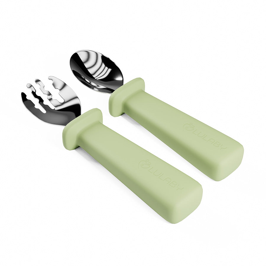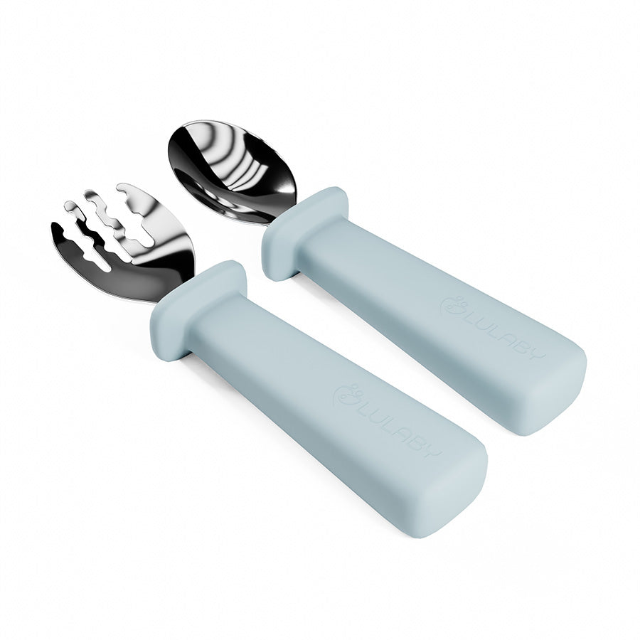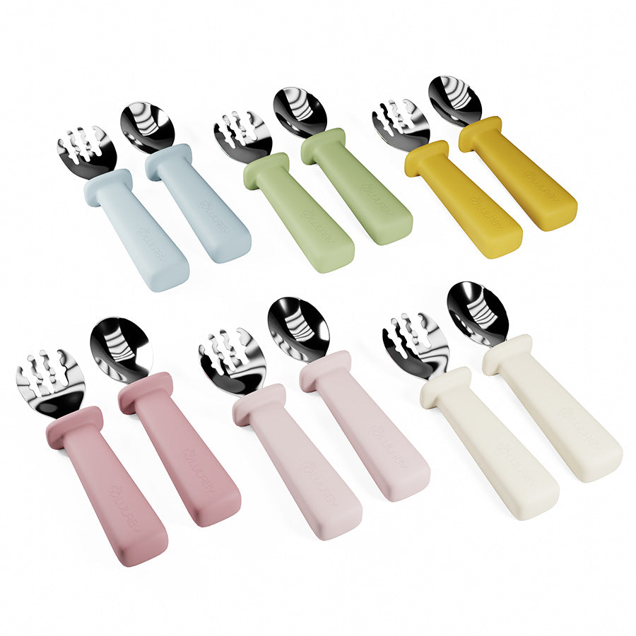 Detský príbor z nehrdzavejúcej ocele so silikónovými rúčkami | lyžička a vidlička
