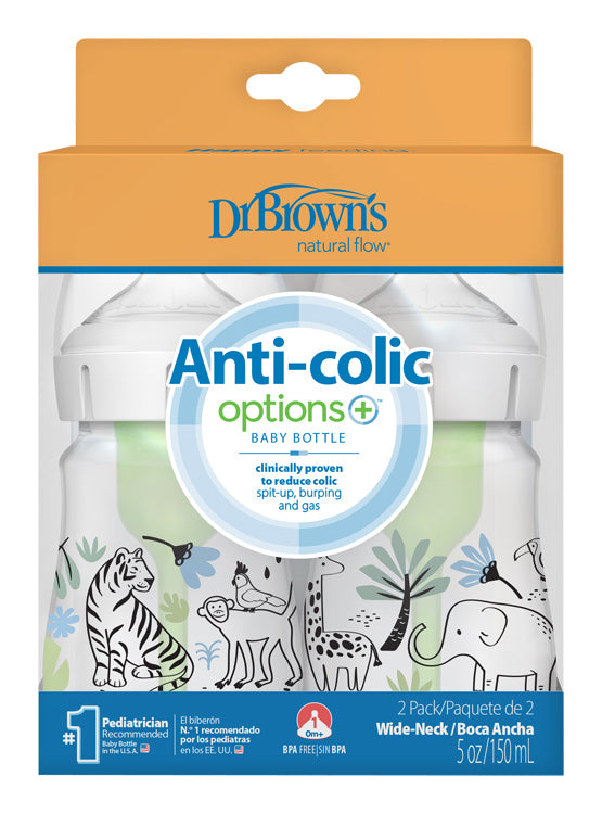 Fľaša antikolik Options+ široké hrdlo 2v1 Džungľa 150ml 2ks plast