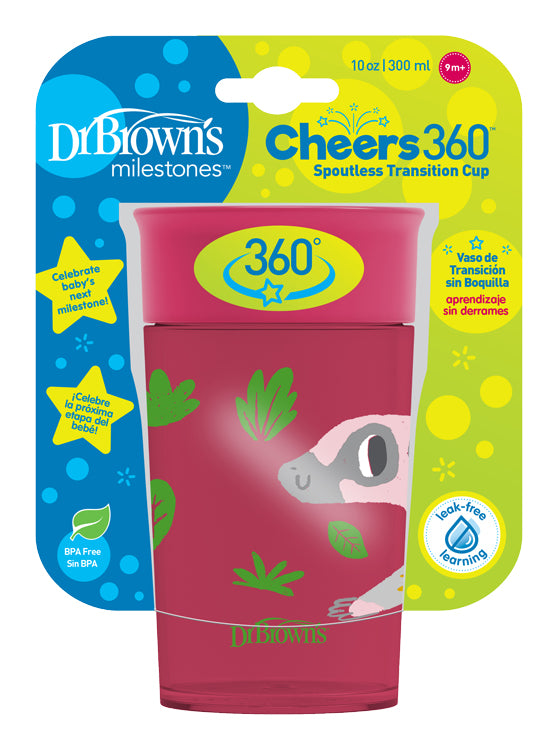 Prechodný pohárik bez náustka Podporte Vaše dieťatko v samostatnosti. Pitie bez kvapiek a rozlievania. Dieťa môže piť zo svojho prvého pohára bez náustka, z ktoréhokoľvek okraja. Silikónový ventil mu umožňuje vidieť dovnútra. Vďaka priehľadnému materiálu hrnčeka viete, kedy je potrebné tekutinu doliať. BPA free. Použitie Keď je dieťa pripravené piť z obyčajného pohára, Hrnček Cheers 360 sa môže používať aj bez ventilu. Odstráňte silikónový ventil z viečka hrnčeka. Otočením umiestnite prázdne viečko na pohárik. Jednodielny dizajn umožňuje jednoduché rozloženie a čistenie. Vhodné do vrchnej časti umývačky riadu. Balenie Súčasťou balenia je cestovný uzáver hrnčeka.